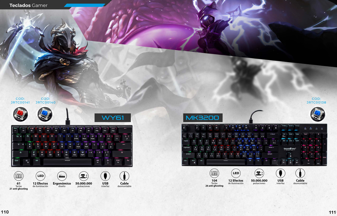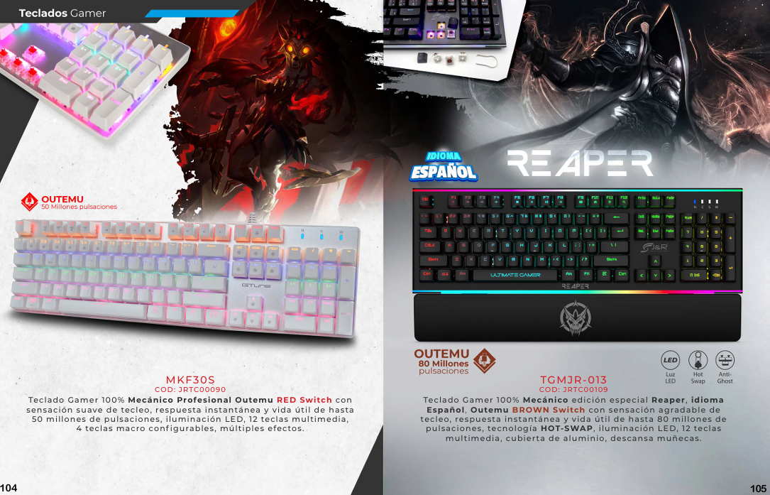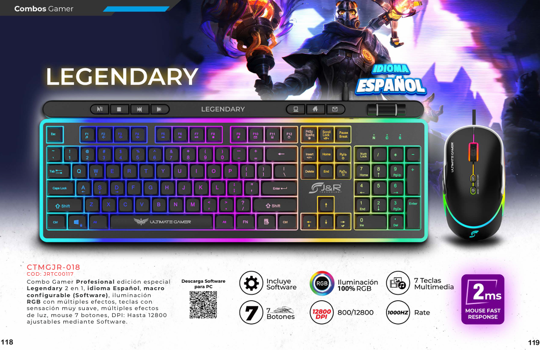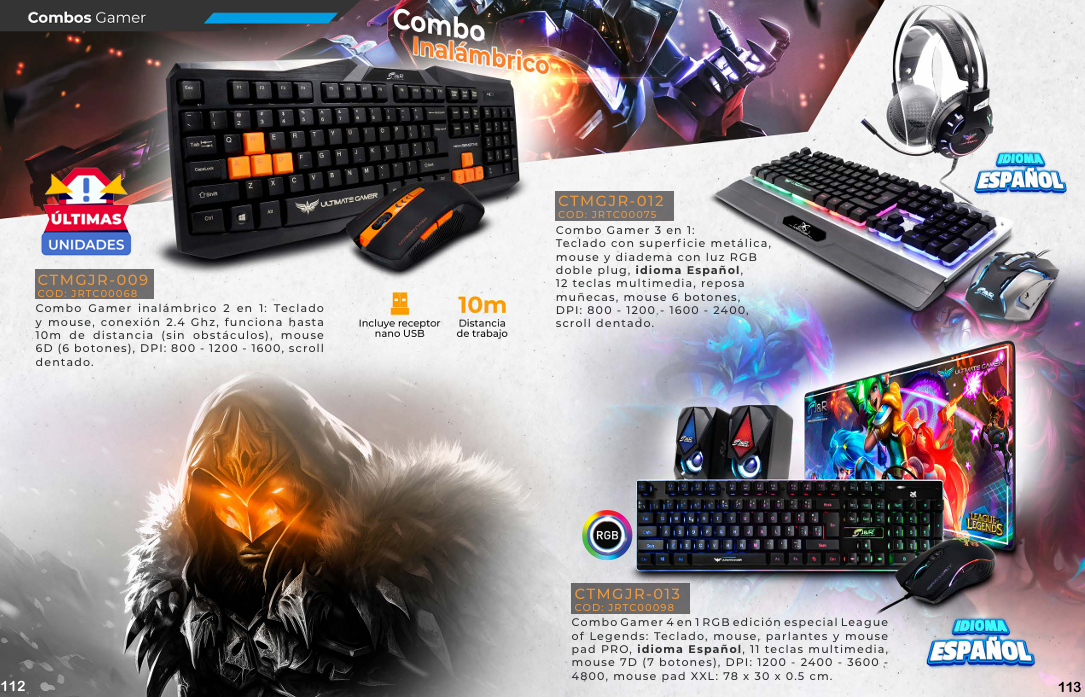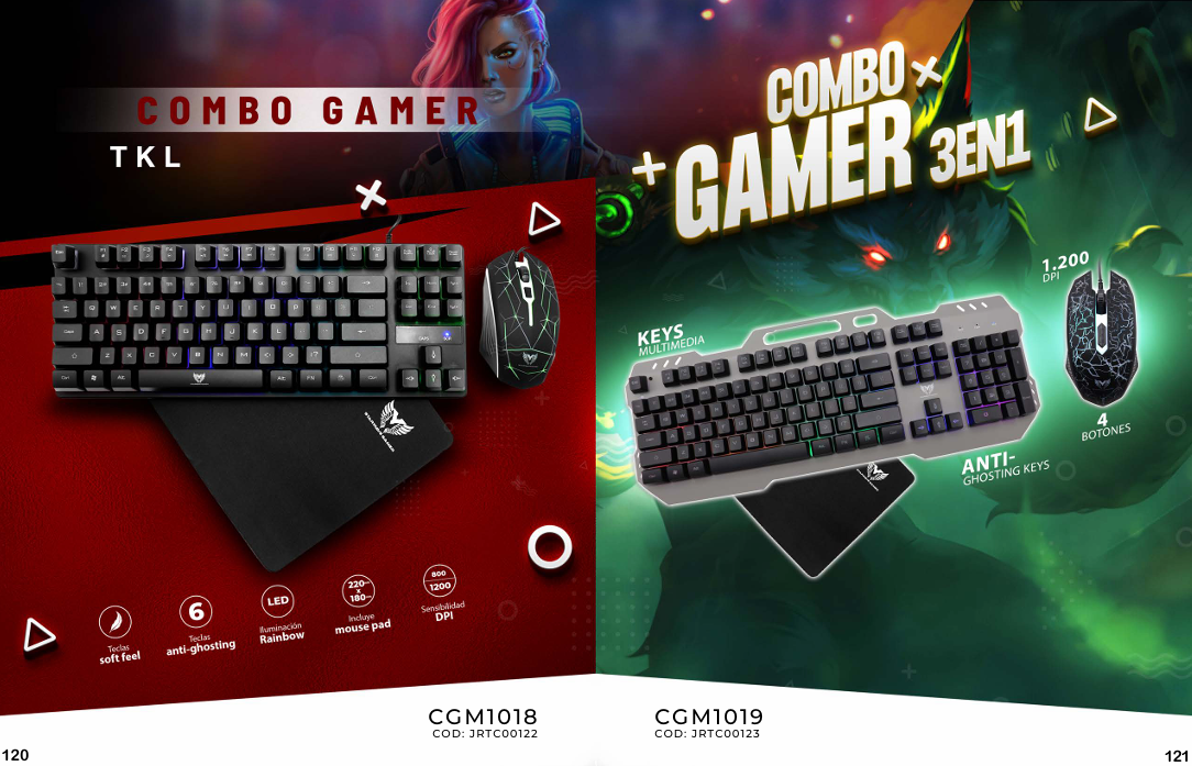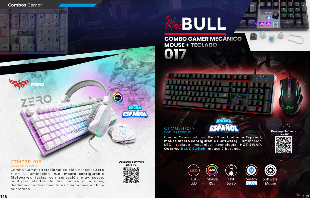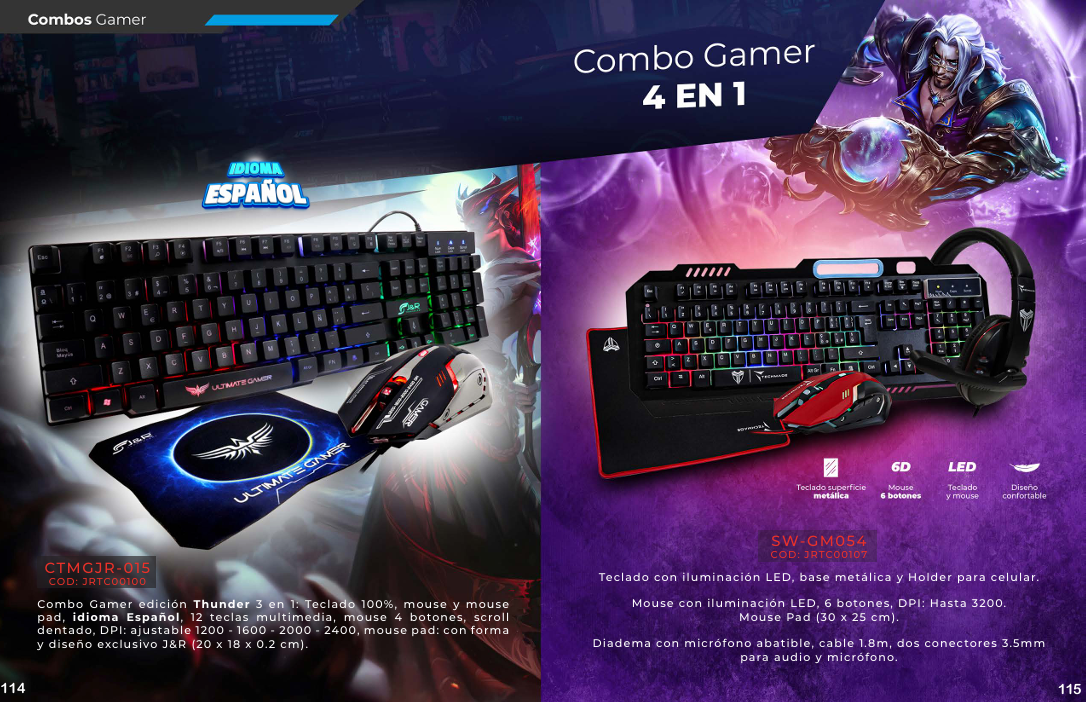 Un combo de teclado y mouse gamer se caracteriza por la ergonomía, la alta respuesta y la personalización, que a menudo incluye iluminación RGB, teclas macro y alta durabilidad para mejorar la experiencia de juego. Los teclados suelen tener tecnologías como interruptores mecánicos o de membrana anti-ghosting, mientras que los mouse destacan por su precisión con varios niveles de DPI (puntos por pulgada) y botones personalizables.